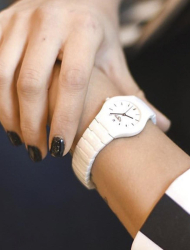 - керамический браслет или кожаный ремешок придает завершенность и особенный эстетический шарм каждой модели. Благодаря миланскому плетению, браслет хорошо регулируется по запястью;.