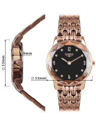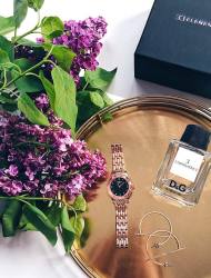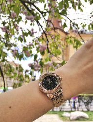 - женские часы декорированы изысканными кристаллами. Большую прелесть изделиям придает желтое либо розовое покрытие;