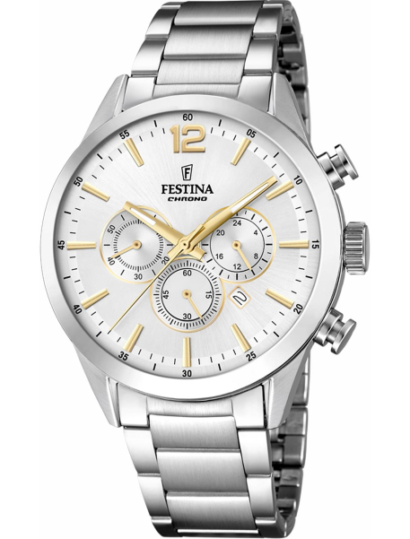Festina – часовой бренд, который прочно закрепился на современном рынке в спортивном и fashion-сегменте, хотя выпускаются и линейки в классическом дизайне. Основанный более ста лет назад, бренд в 1984 году стал частью Festina Group: после смены фокуса на широкую аудиторию (раннее компания выпускала часы только Premium класса) популярность Festina значительно возросла. Способствовало этому и стремление следовать техническим инновациям, использование передовых функций. Сейчас в год продается около 5 млн. экземпляров часов компании.