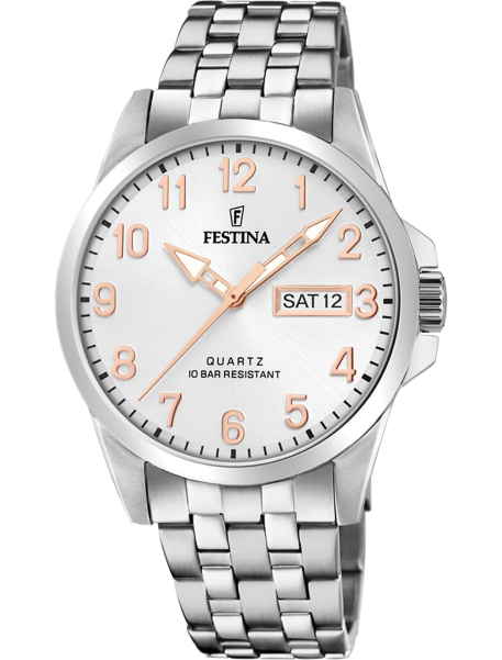 Festina – часовой бренд, который прочно закрепился на современном рынке в спортивном и fashion-сегменте, хотя выпускаются и линейки в классическом дизайне. Основанный более ста лет назад, бренд в 1984 году стал частью Festina Group: после смены фокуса на широкую аудиторию (раннее компания выпускала часы только Premium класса) популярность Festina значительно возросла. Способствовало этому и стремление следовать техническим инновациям, использование передовых функций. Сейчас в год продается около 5 млн. экземпляров часов компании.