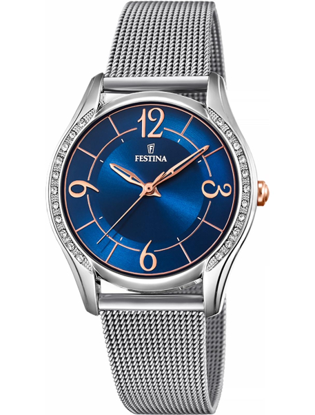 Festina – часовой бренд, который прочно закрепился на современном рынке в спортивном и fashion-сегменте, хотя выпускаются и линейки в классическом дизайне. Основанный более ста лет назад, бренд в 1984 году стал частью Festina Group: после смены фокуса на широкую аудиторию (раннее компания выпускала часы только Premium класса) популярность Festina значительно возросла. Способствовало этому и стремление следовать техническим инновациям, использование передовых функций. Сейчас в год продается около 5 млн. экземпляров часов компании.