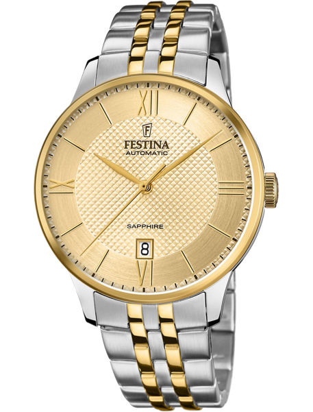 Festina – часовой бренд, который прочно закрепился на современном рынке в спортивном и fashion-сегменте, хотя выпускаются и линейки в классическом дизайне. Основанный более ста лет назад, бренд в 1984 году стал частью Festina Group: после смены фокуса на широкую аудиторию (раннее компания выпускала часы только Premium класса) популярность Festina значительно возросла. Способствовало этому и стремление следовать техническим инновациям, использование передовых функций. Сейчас в год продается около 5 млн. экземпляров часов компании.