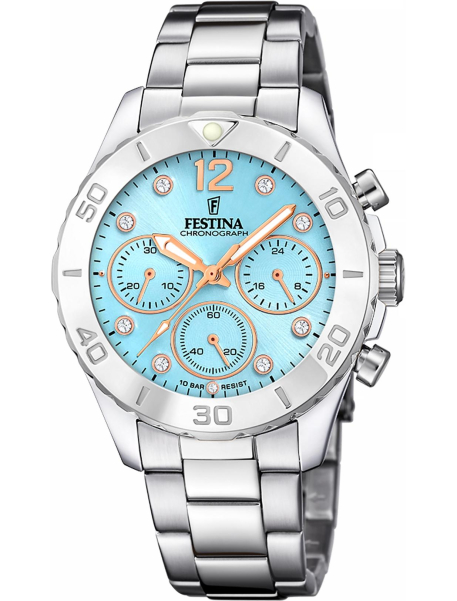 Festina – часовой бренд, который прочно закрепился на современном рынке в спортивном и fashion-сегменте, хотя выпускаются и линейки в классическом дизайне. Основанный более ста лет назад, бренд в 1984 году стал частью Festina Group: после смены фокуса на широкую аудиторию (раннее компания выпускала часы только Premium класса) популярность Festina значительно возросла. Способствовало этому и стремление следовать техническим инновациям, использование передовых функций. Сейчас в год продается около 5 млн. экземпляров часов компании.
