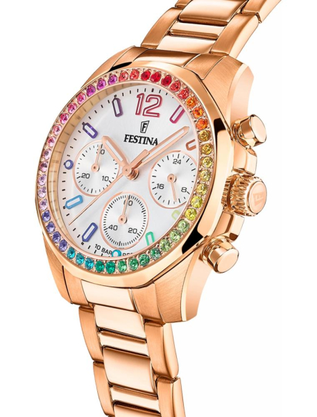 Festina – часовой бренд, который прочно закрепился на современном рынке в спортивном и fashion-сегменте, хотя выпускаются и линейки в классическом дизайне. Основанный более ста лет назад, бренд в 1984 году стал частью Festina Group: после смены фокуса на широкую аудиторию (раннее компания выпускала часы только Premium класса) популярность Festina значительно возросла. Способствовало этому и стремление следовать техническим инновациям, использование передовых функций. Сейчас в год продается около 5 млн. экземпляров часов компании.