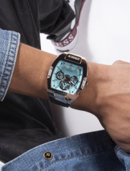 После удачного старта и головокружительной раскрутки денима, сделавшей его гламурным, основатели бренда братья Марсиано решили дополнить образ нового «джинсового» поколения и акцентировали внимание на аксессуарах. Часы Гесс изначально были ориентированы на ярких, ведущих активную жизнь и неукротимых молодых людей, поэтому дизайнеры создавали коллекции, в которые входили практически все стили. Компания старается «всегда быть в тренде» и соответствовать новейшим веяниям моды, поэтому купить часы Guess стараются самые уверенные и стильные люди, которыми изобилует Москва и другие регионы страны.Несмотря на экстравагантность моделей, хронометры бренда имеют достойное исполнение и становятся для своего владельца надежным спутником и ярким акцентом стиля. Мужские часы Guess предназначены для уверенных в себе и следящих за своим стилем мужчин, потому гармонично сочетают в себе безупречность качества и лаконичность дизайна.