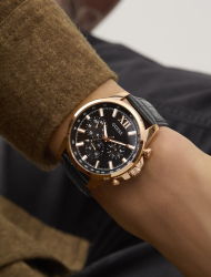 После удачного старта и головокружительной раскрутки денима, сделавшей его гламурным, основатели бренда братья Марсиано решили дополнить образ нового «джинсового» поколения и акцентировали внимание на аксессуарах. Часы Гесс изначально были ориентированы на ярких, ведущих активную жизнь и неукротимых молодых людей, поэтому дизайнеры создавали коллекции, в которые входили практически все стили. Компания старается «всегда быть в тренде» и соответствовать новейшим веяниям моды, поэтому купить часы Guess стараются самые уверенные и стильные люди, которыми изобилует Москва и другие регионы страны.Несмотря на экстравагантность моделей, хронометры бренда имеют достойное исполнение и становятся для своего владельца надежным спутником и ярким акцентом стиля. Мужские часы Guess предназначены для уверенных в себе и следящих за своим стилем мужчин, потому гармонично сочетают в себе безупречность качества и лаконичность дизайна.