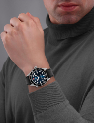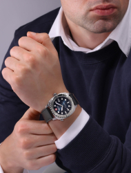 В комплекте 2 безеля, стальной браслет и черный кожаный ремешок.